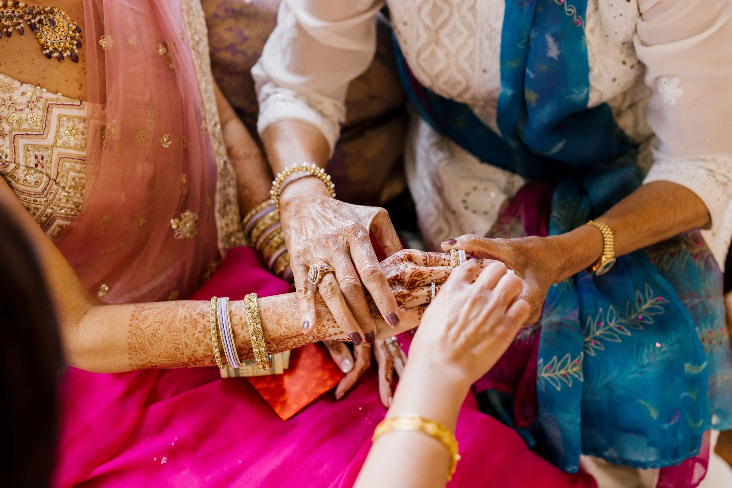 We started the day with a choora ceremony, where closest family and friends, along with Raj, adorned Kristin with bangles & their blessings, and then tied the kalire and shook them to see if some blessings of finding a fabulous partner could be passed along to the next person!